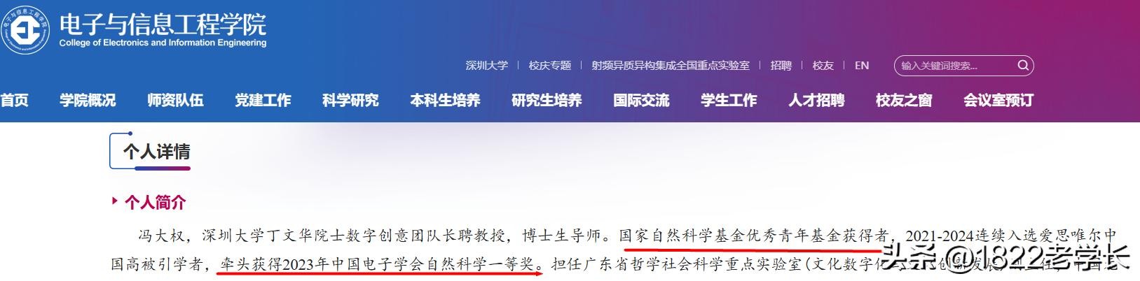 深大在电子信息领域真的发展很快,引进了一批高水平人才,建设了一批高端科研平台。拥有射频异质异构集成全国重点实验室、ATR国防科技重点实验室智能信息处理研究室(智能信息处理广东省高校重点实验室)、二维材料光电科技教育部国际合作联合实验室等等。电工院引进了不少例如获奖的冯大权、黄磊教授,均入选杰青。