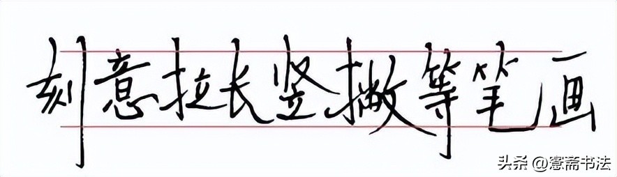 切勿刻意频繁拉长某个笔画,例如竖画、撇画。