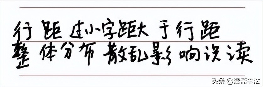 这个问题通常出现在空白纸上的书写,很多同学字见距离拉的比较开,但是上下行之间距离很窄,上下字笔画甚至交叉在一起,非常影响整体的识读。