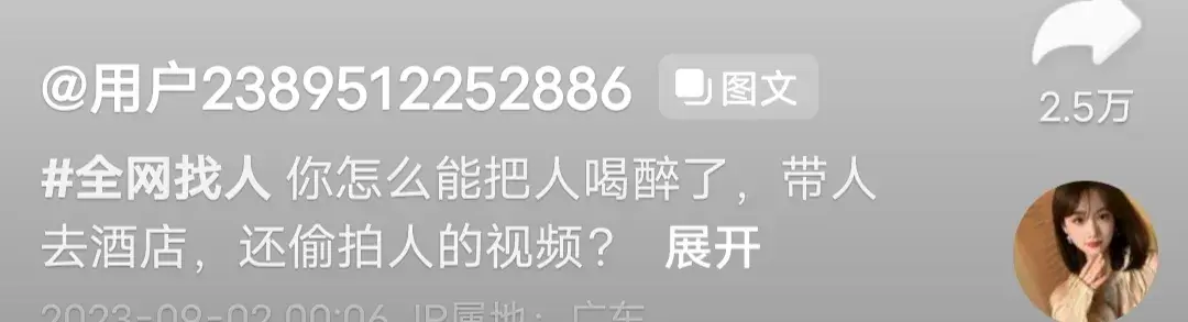半夜女朋友被人灌醉带去酒店炫耀,男朋友投4万多抖加满世界寻人