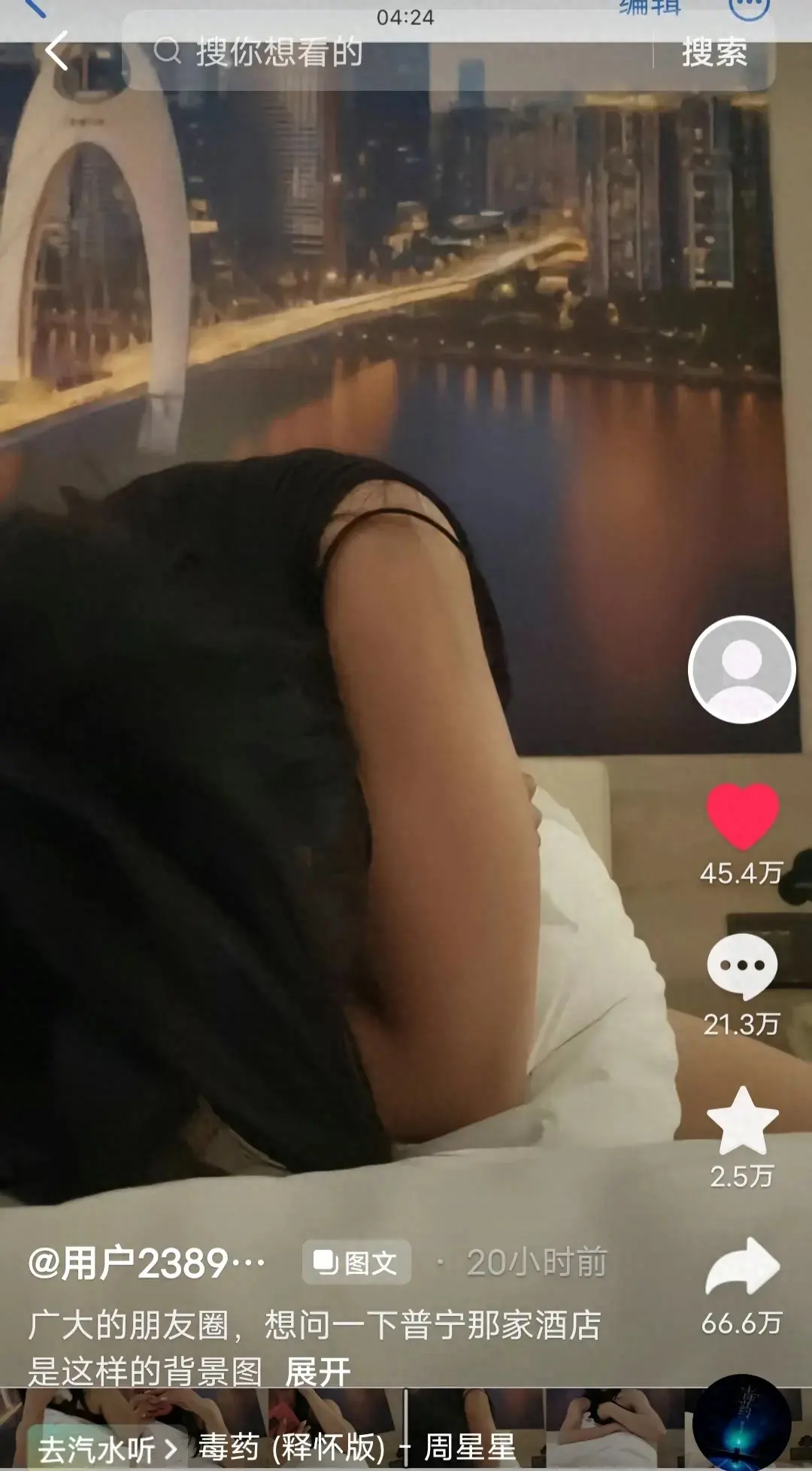 昨天半夜刷到一个视频,一个新注册的账号,甚至名字和头像都没来的急换,却有好几十万的点赞,配图一张照片,照片上貌似一个女生在酒店被偷拍,并发给了男生,