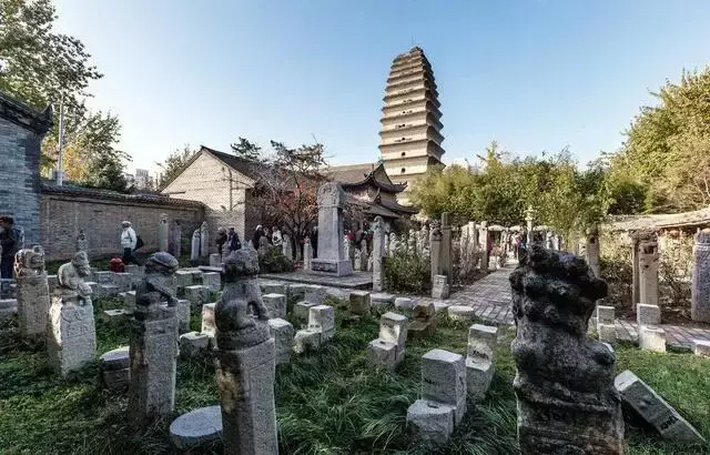 大雁塔位于西安市大慈恩寺内,玄奘为保存由天竺经丝绸之路带回长安的经卷佛像主持修建了大雁塔。