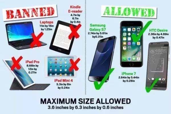 第一阶段:加强对赴美航班旅客随身所携带大于手机的电子产品(如平板、笔记型电脑、电子书、DVD播放机、游戏机及相机等)实施检查,已实施。