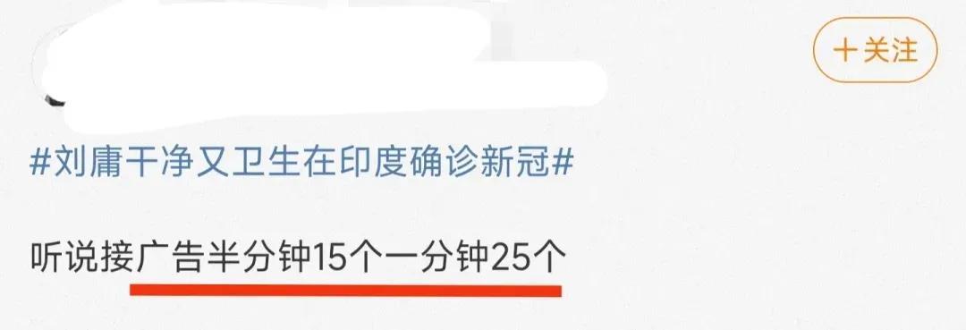 刘庸百毒不侵一朝破功?他的爆火让某些眼红的网友说他是为了博眼球,对他的争议也从来没有停止过。一天内发6条动态4条都是广告代言,网友说刘庸接广告频率高,他怒斥网友:不爱看就取关啊!