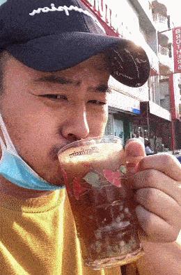 刘庸喝芦荟汁