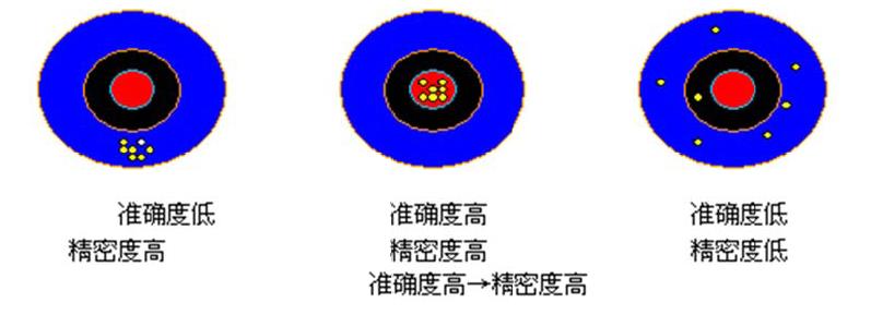 根据以上分折,我们可以知道:准确度高一定需要精密度好,但精密度好不一定准确度高。若精密度很差,说明所测结果不可靠,虽然由于测定的次数多可能使正负偏差相互抵消,但已失去衡量准确度的前提。因此,我们在评价分析结果的时候,还必须将系统误差和偶然误差的影响结合起来考虑,以提高分析结果的准确度。