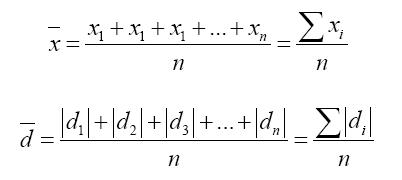如果对同一种试样进行了n次测定,若其测得的结果分别为:x1,x2,x3,…,xn,则它们的算术平均值、算术平均偏差、和相对平均偏差分别可由以下各式计算: