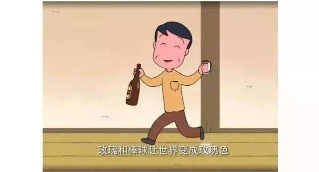 每次吃饭总会喝酒,平常也经常手里拿着酒。小丸子的爸爸不止一次说,喝酒就是他人生的终极目标。因为太喜欢喝酒了,唯一一次为了参加运动会,没喝酒,家里人都感觉太奇怪了。