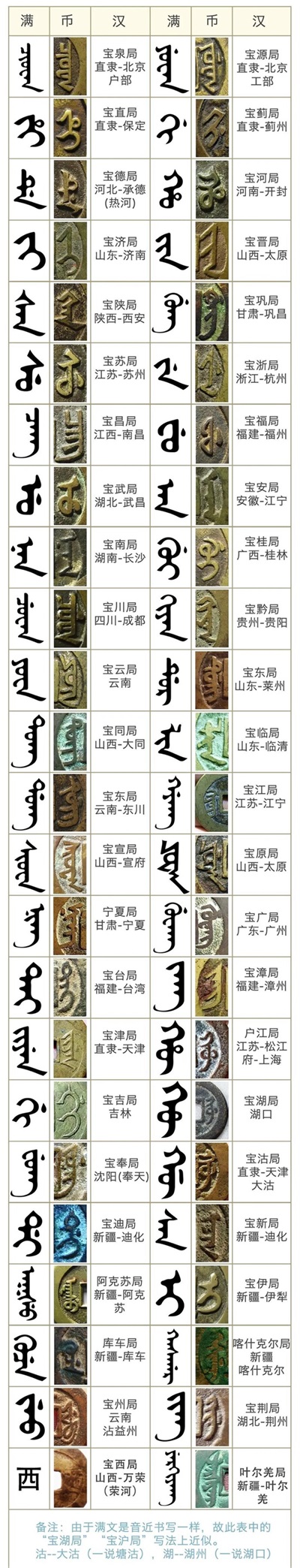 之前也见过一些古钱币的满汉文对照表,但是都没泉海这个全,把币文的原样也呈现出来了。