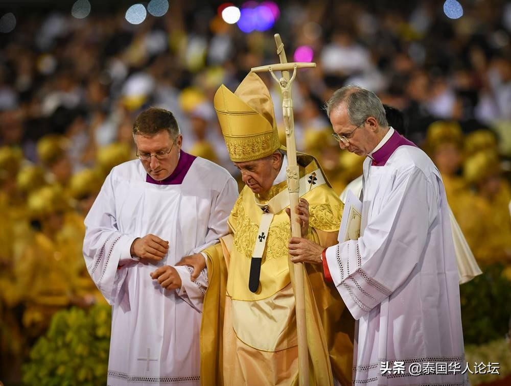 泰国新泰日报社讯 泰媒报道,11月21日,当地时间18:00,天主教教宗方济各前往泰国国家体育场,主持天主教弥撒仪式,众多泰国及外国信徒也涌入体育场,共同参与弥撒。