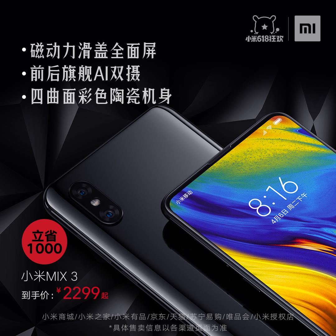 小米MIX3这部手机相信很多人都不会陌生吧,该机采用的是滑盖式全面屏的设计,搭载了高通骁龙845处理器,不管是颜值、性能还是拍照都很强大,这部手机也是受到了很多消费者的认可。而小米在此次的618大促中为了回馈消费者也是下了很大的功夫,表示在6月16日-6月18日小米MIX 3手机直降1000元,也就是说我们买小米MIX3仅需2299元,可谓是划算。另外小米9的6GB+128GB版本也是直降200元,到手价仅需2799元;购买小屏旗舰小米9SE 就送299元小米AI音箱。小米8 青春版直降400元,可以说现在是时候入手这些手机了。
