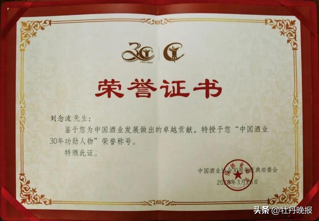 喜报-山东花冠酒业董事长荣获“中国酒业30年功勋人物”荣誉称号