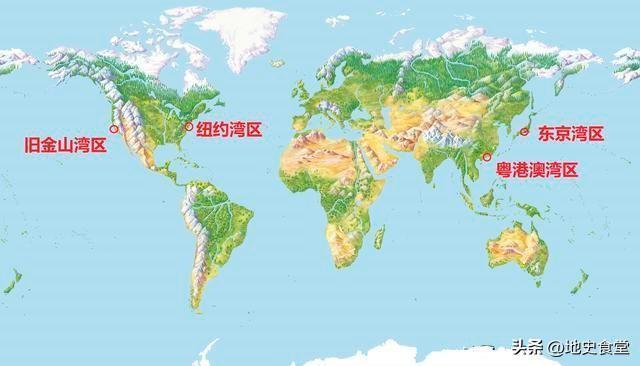 粤港澳大湾区。粤港澳湾区位于我国南方,濒临南海,是由珠江三大支流西江、北江、东江等在溺谷湾内合力冲积形成的复合三角洲。珠江三角洲,地形平坦,有利于城市的建设和经济的发展。