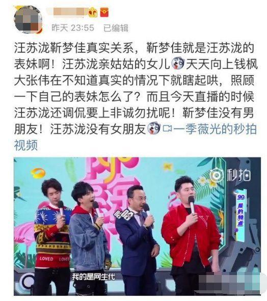 汪苏泷是靳梦佳的表哥,靳梦佳的母亲是汪苏泷的亲姑姑。不过澄清一出小伙伴们的眼球掉一地,事情反转的太快让人猝不及防。