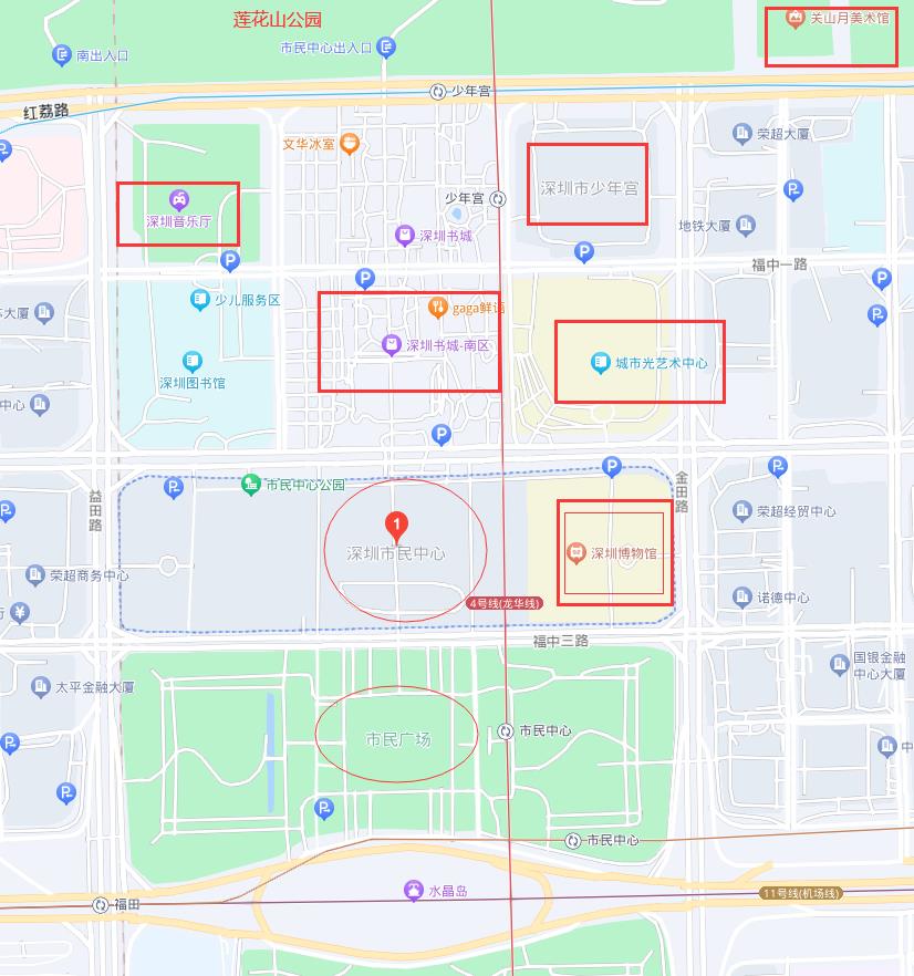 白天可在深圳博物馆深度了解深圳这座城市的古代、近代、现代发展历史;也可去旁边的深圳当代艺术与城市规划馆观展;更可到旁边的深圳书城(亚洲最大)去安静的看书;不怕晒的宝也可直接到旁边的莲花山登顶俯瞰大半个深圳的CBD,在傍晚时刻也可在山顶观赏落日,亦或走下来到市民中心南广场二楼连廊天台上观赏落日,晚上还可就地欣赏CBD灯光秀。