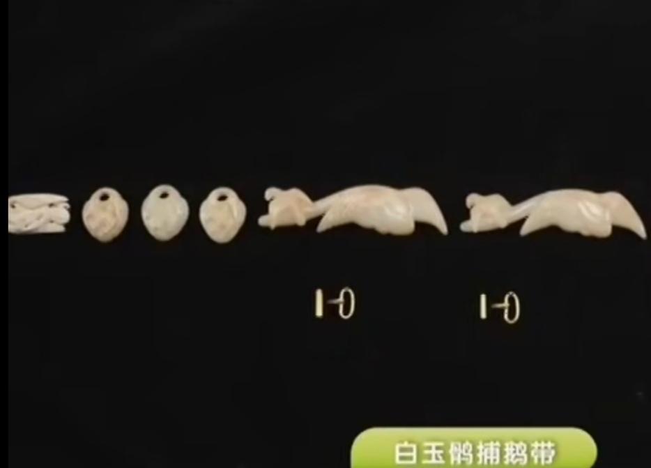 研究结果表明这是一条春水玉束带。这条春水玉有什么特点呢?它描述的是海东青和天鹅搏斗的场面。海东青是一种非常小,非常敏捷,非常凶猛的鹰。春水玉腰带是金元时期的物品,结合质地,这条腰带,或许还在金代皇室的宝库中被妥善的收藏过。