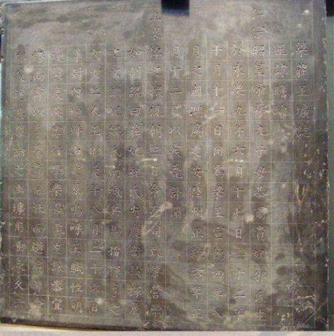 明朝的墓志是放在墓内,都是放在棺椁附近的。梁庄王墓的墓志为何栖身在门户之外呢?梁庄王墓出土的两块墓志大小不一,带着发现了新墓葬形式的兴奋,考古队员在现场打开,墓志中较大的是《梁庄王墓墓志》,较小的则是《大明梁庄王妃圹志文》。梁庄王的墓志简要的叙述了他的生平,这和考古队员事先掌握的资料能够相互印证。而王妃的圹志文中则记载了一个凄碗的爱情故事:王以疾菀,欲随王逝。承奉司奏,蒙圣恩怜悯遂降。敕旨存留抚养王二幼女,仍主王宫之事。景泰二年三月十七日,以疾薨。