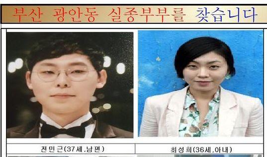 釜山南部警察署本月18日表示,已经将印有失踪者全敏根(音,失踪时34岁)和妻子崔成希(音,失踪当时33岁)照片、失踪当时穿着、身份资料等内容的传单进行了发放。