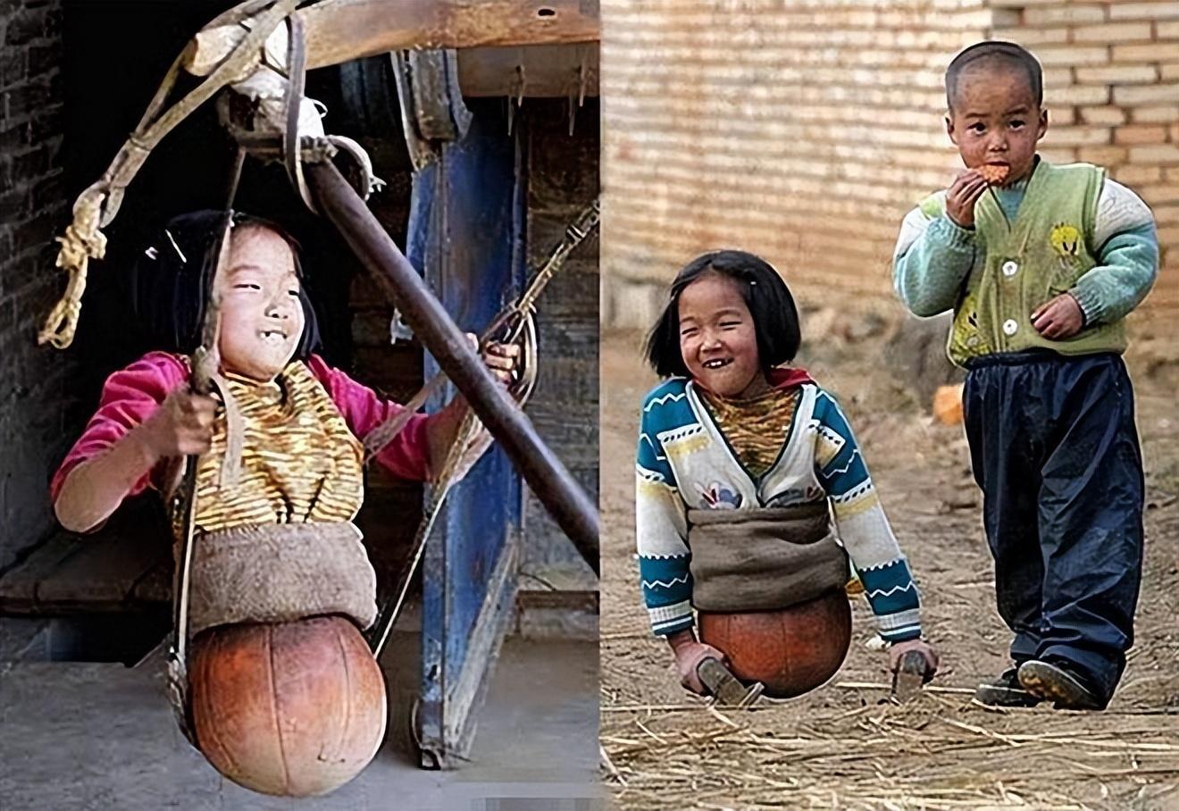 为了让孙女行走得更方便一些,爷爷在篮球里塞进了旧棉花,并为她制作了一对“木手垫”。