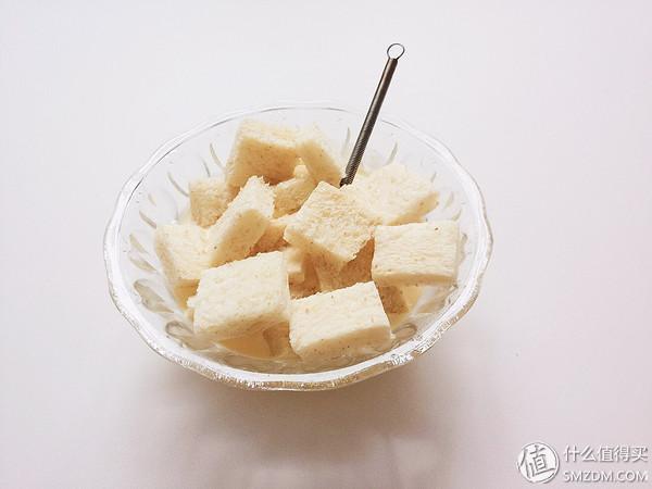 ▼把土司浸入蛋奶液几秒,均匀包裹浸泡