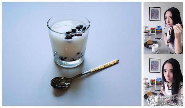 这个的简单程度是仅次于直接吃的,酸奶撒上蔓越莓干就可以了,当然也可以用搅拌机打散了吃,这个根据个人喜好了~吃不了就直接冻了做冰淇淋吃,蛮方便的~