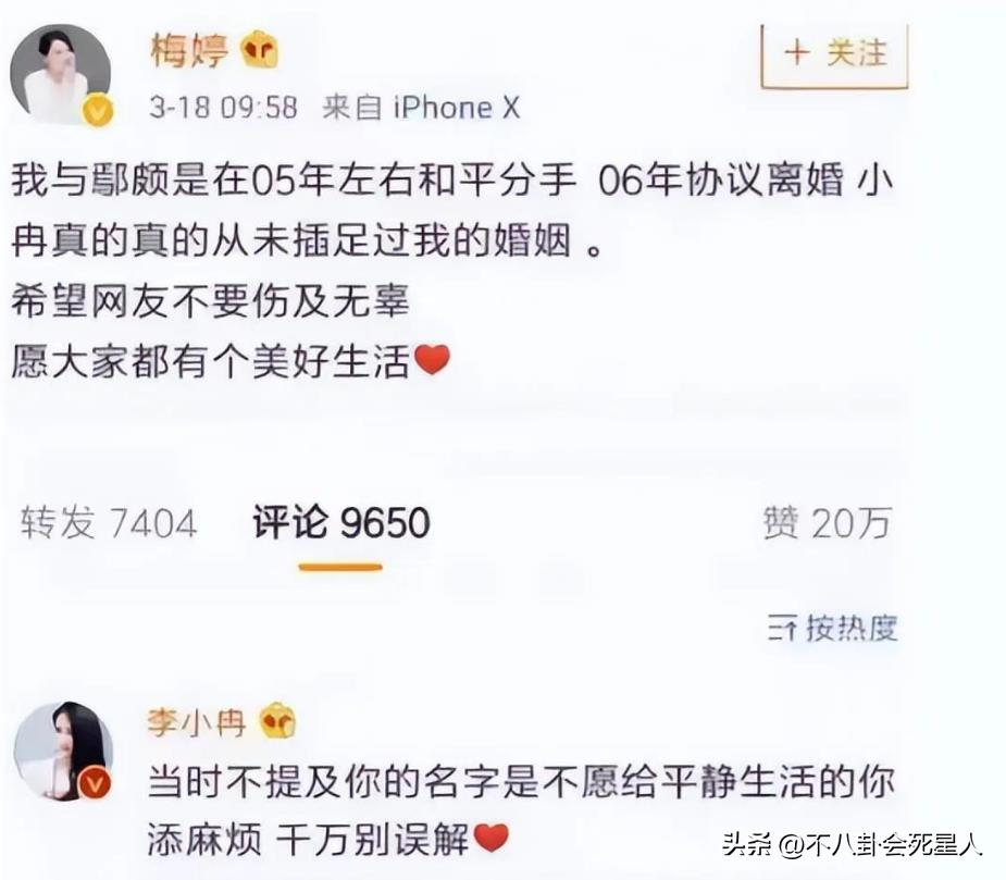 后来,鄢颇渐渐有了名气,两人也终于摆脱了女强男弱的局面,两人却突然离婚了。关于离婚的说法,有的说是吃软饭;还有的说鄢颇劈腿李小冉,不过梅婷澄清了。
