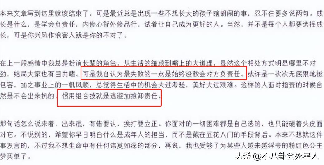 而后,因为陈赫粉丝的不断骚扰,许婧最后一次发长文回应离婚事件,算是将两人的真正离婚原因说出来了。和第三者无关,而是女方受够了男方的“不负责任”,遇事情只会躲避。