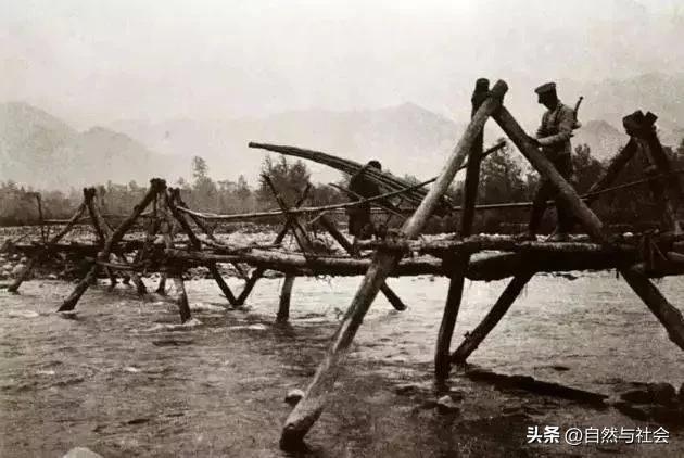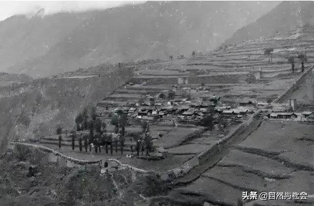 叠溪大地震四周山峰崩塌,堆积体阻塞岷江,形成堰塞湖(庄学本摄于1934年)