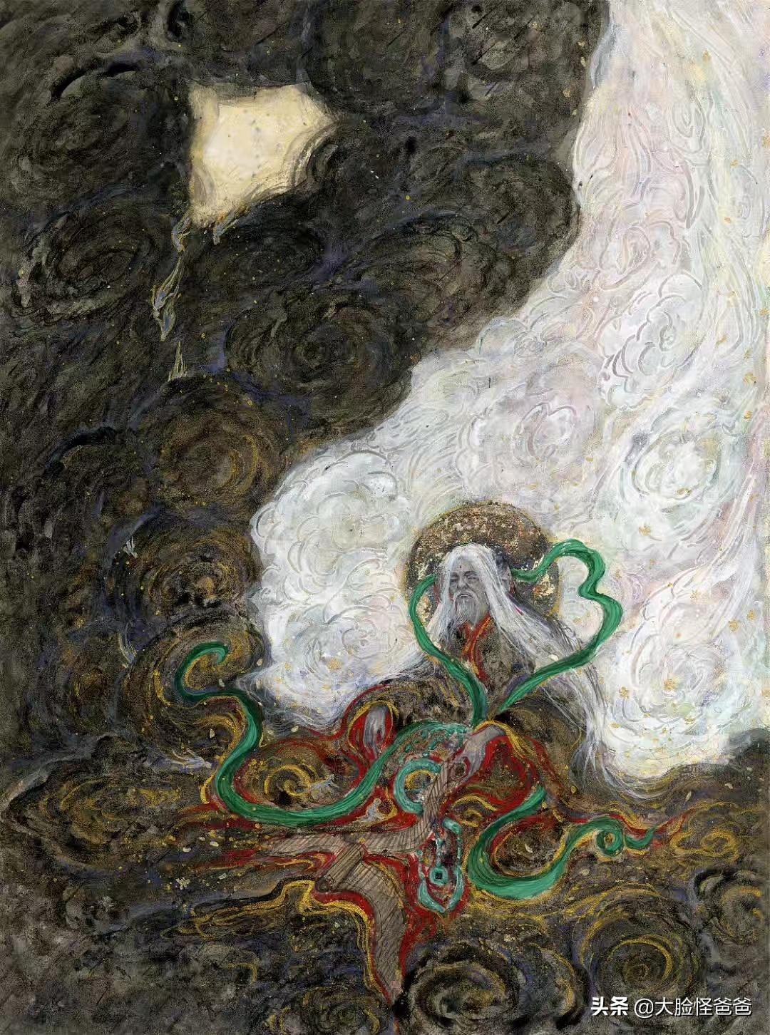 史诗中说天地之初只是一团气体,一片混沌弥漫在黑暗之中,开始的时候并没有水,经过无数代神人的努力,由一个叫“江沽”的神人,把水给创造了出来。同样水是先于天地而诞生的,这恐怕是楚国太一创世神话的另一个翻版。关于《黑暗传》的详细内容,大脸怪曾经发布过一个文章,有兴趣的朋友们可以移步到主页观看。