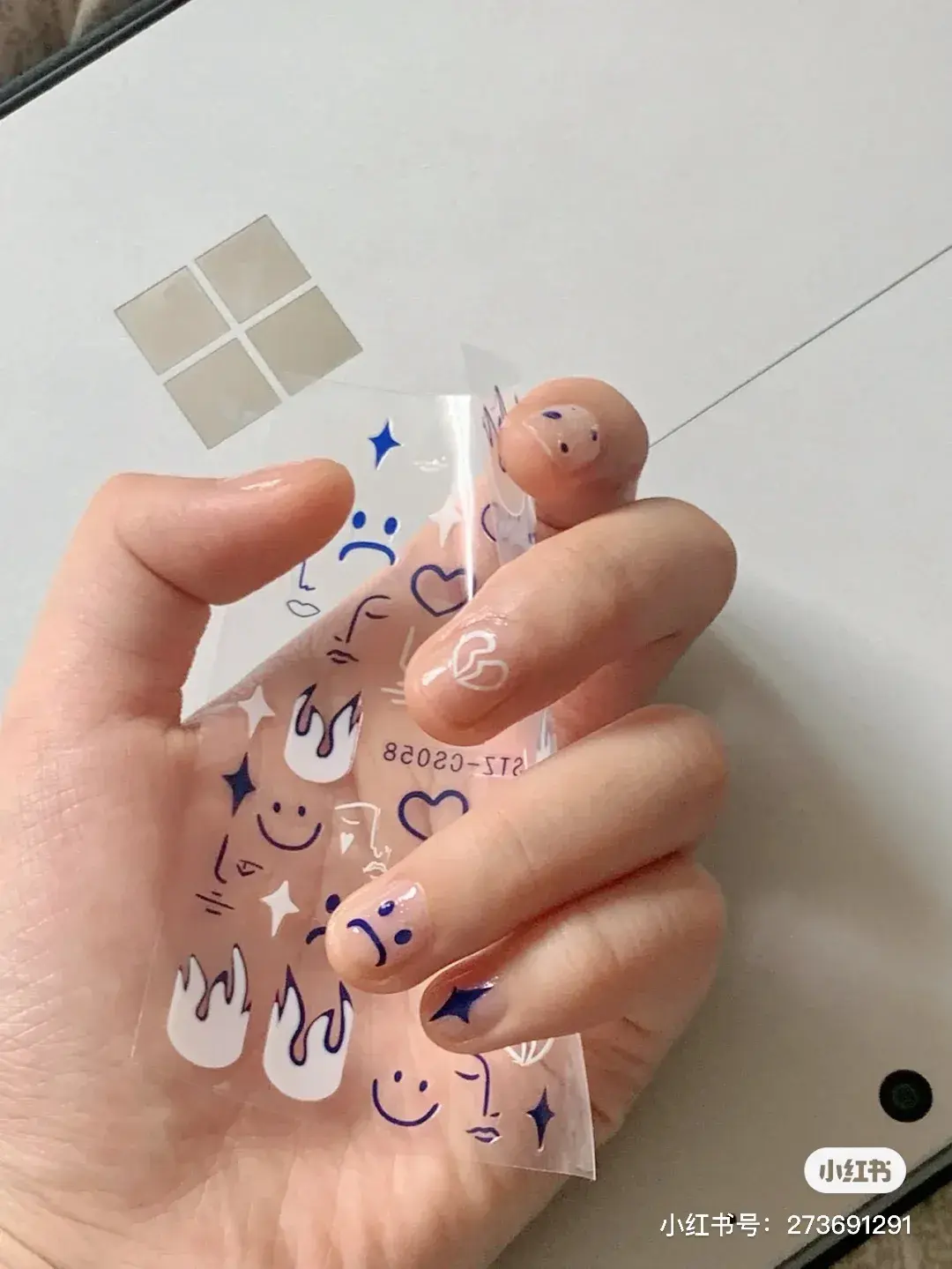 用不好胶水的姐妹不妨试试美甲贴,就像小时候在墙上贴贴纸一样,将美甲图案贴到甲面上即可,怎么会有这么方便好用的东西?!