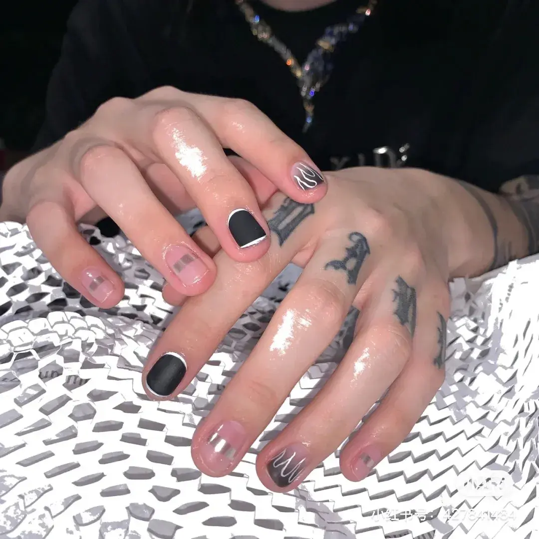 其实炫酷风美甲也并不一定需要甲片来加持,中性风或是男生们的短甲同样合适,简单的黑白色加之自己独特的设计想法,与众不同才是最酷!