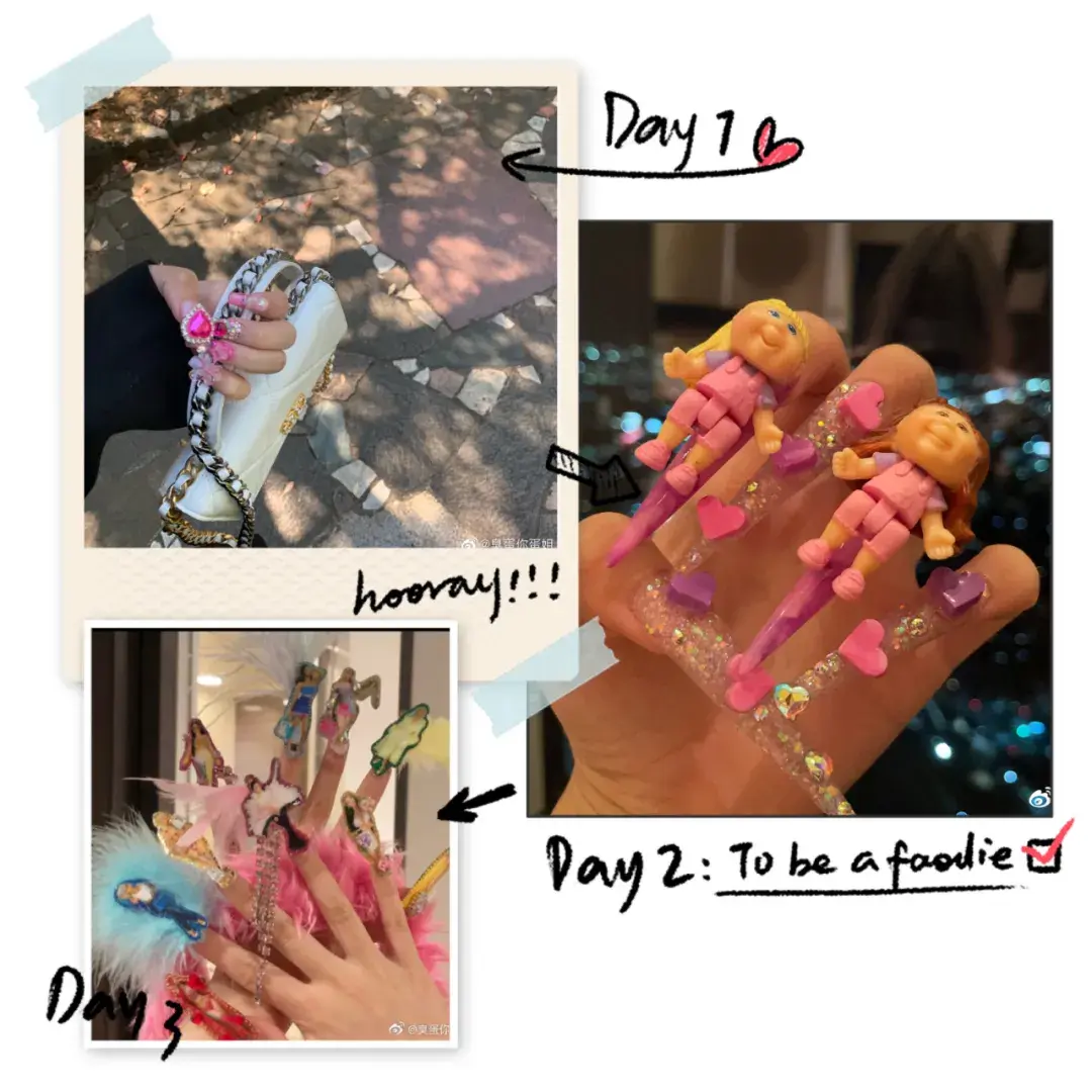 但是这样超长型美甲肯定日常是很不方便的啦,梳洗打扮时都面临了不少问题,咱们就算心动也只能看看就好了。