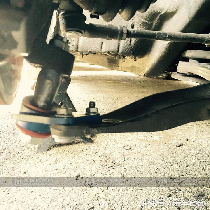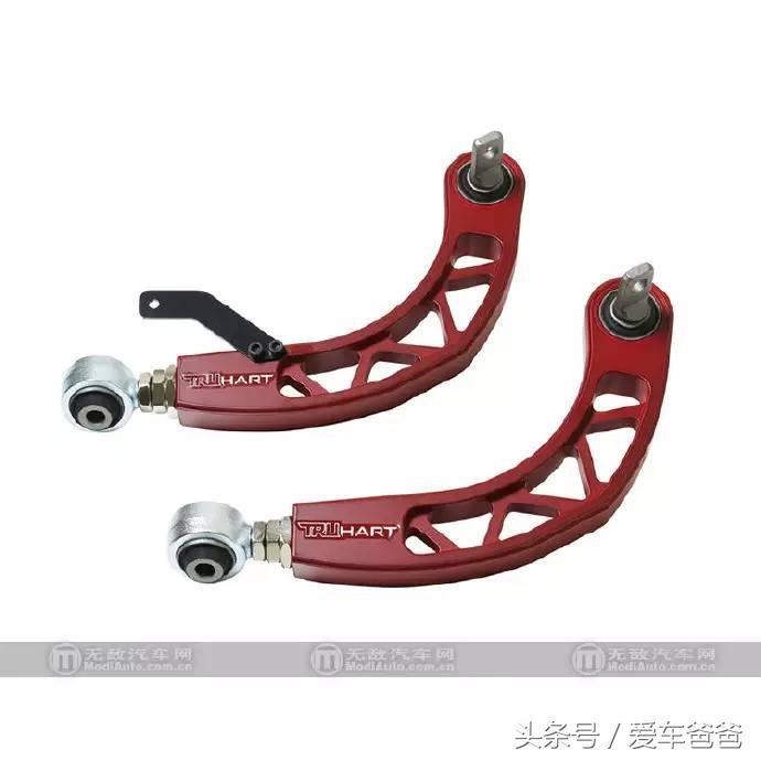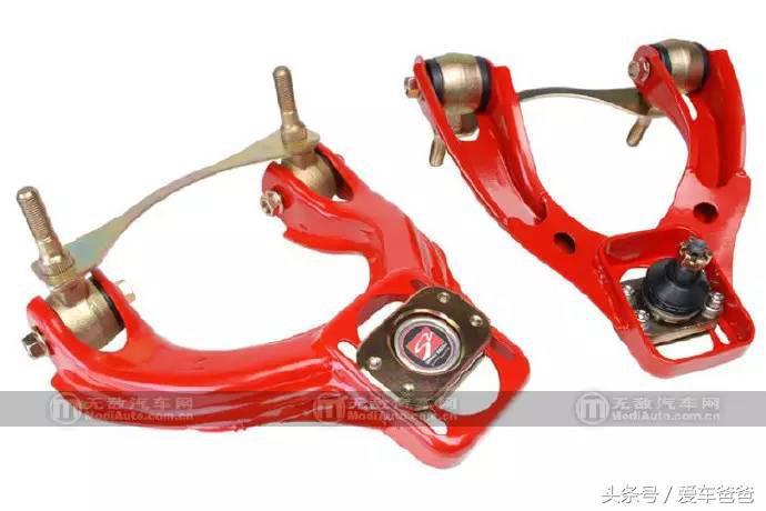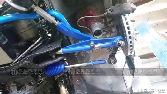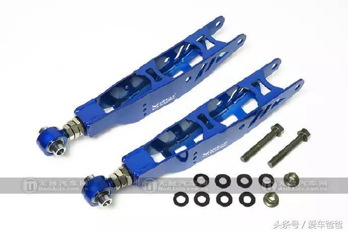 图:一般对性能有要求的车辆改装会同时使用可调式下控制臂,来调节倾角和轮距。