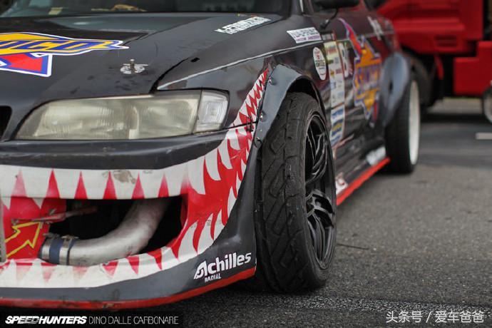 图:飘移车前轮通常使用较大的倾角,以便前轮能发挥更好的抓地力而维持大角度飘移的姿态。