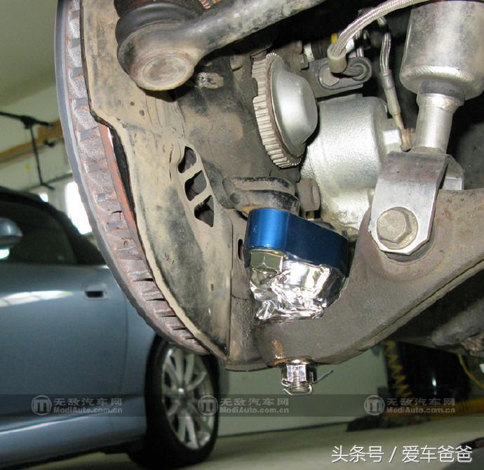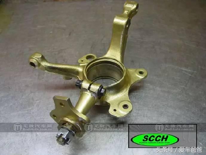 图:上图的这种在下摇臂球头和羊角之间加长的方式可以同时修正滚动重心和倾角,一些车型有专用垫块可以购买,某些车型(譬如大众)因为球头安装方式特殊因此需要自制。