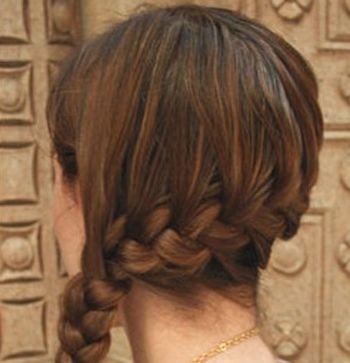 step3:编到脑后时,公主风的半扎就出现啦,这时就可以接着层次感的以斜的方向编。