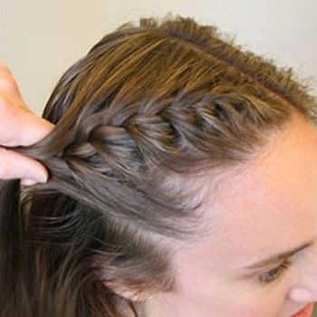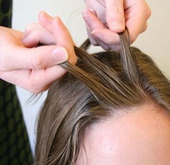 step1:将侧分的头发在发际线中拉出一股,分为三个。