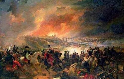 经过多场双方损失惨重的激战,9月16日,拿破仑入侵莫斯科,俄军司令库图佐夫、巴克莱等人力排众议,放弃首都,与沙皇亚历山大一世带着剩余的俄国高级将领和大部分居民撤出。