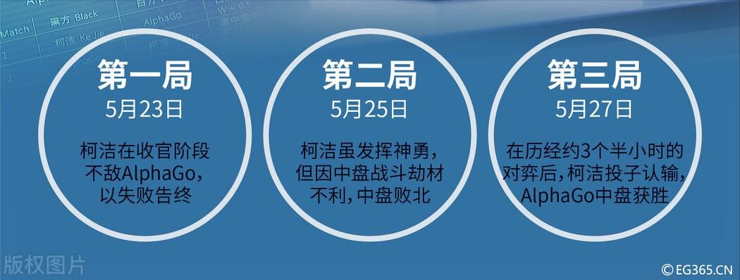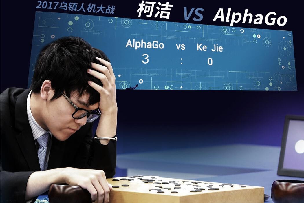 在2017年5月23日的一场人机大战中,柯洁以黑子身份对阵谷歌的AlphaGo,结果在收官阶段被AlphaGo击败,第一局就落败。2017年5月25日,人机大战第二局落下帷幕,柯洁虽然表现出色,但是由于中盘的不利,最终也未能挽回败局。AlphaGo以2-0领先,已经赢得了比赛。按照规定,第三局在27日仍然如期举行。2017年5月27日,乌镇围棋峰会最后一天,也是人气最高的柯洁与AlphaGo的最后一场对垒。面对AlphaGo,柯洁全力以赴,但仍然束手无策,最后只能选择投子认输。