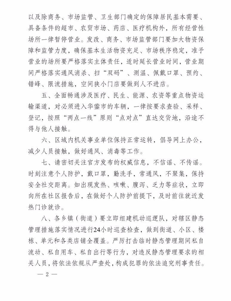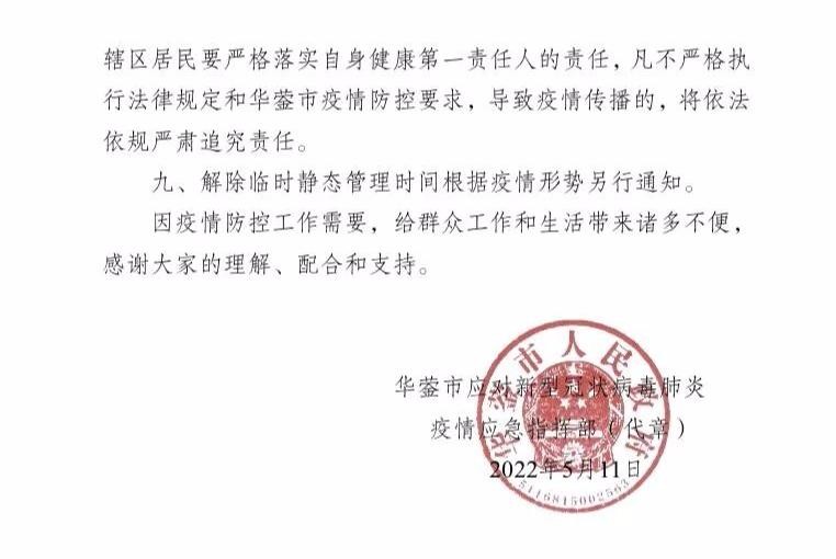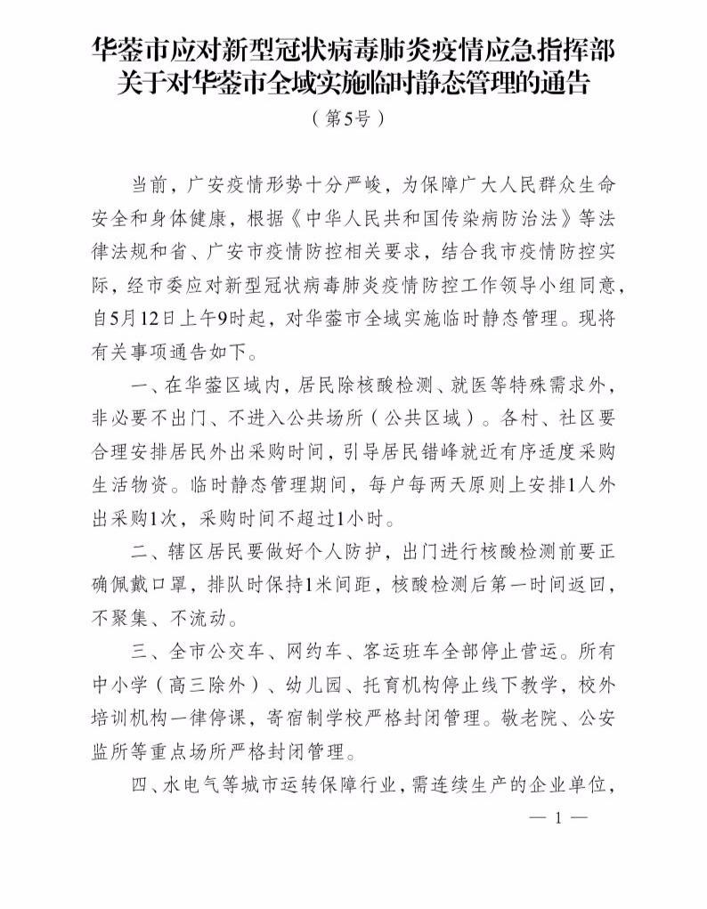 5月12日上午9时起华蓥市全域实施临时静态管理