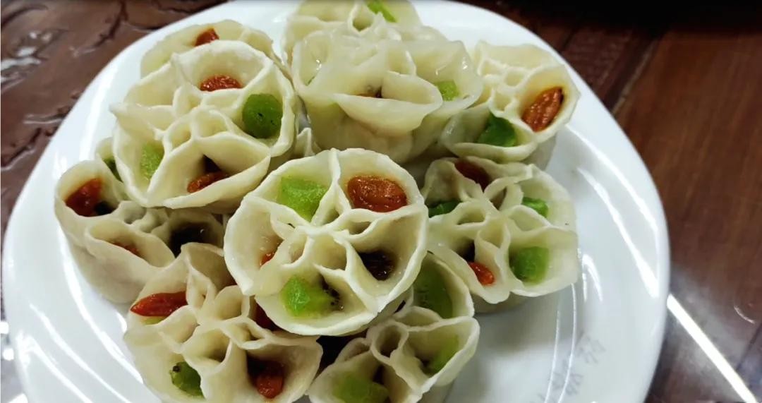 蜂窝糖包,以羊油、葡萄干、果干、红糖等为馅,不仅形状独特,味道也“独树一帜”,晶莹剔透的外皮,“个性鲜明”的口感,韭菜柳叶包是撒拉人家菜肴中必不可少的一项。