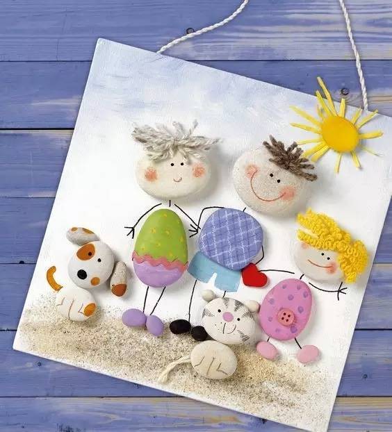 幸福的一家人,在小朋友心中,家是什么,家里都有谁呢?画在石头上吧!