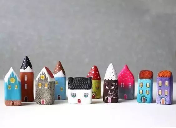 石头房子主要看的则是配色和创意,其实石头实在找不到,用粘土捏一个这些形状都可以最终做到这样的效果。