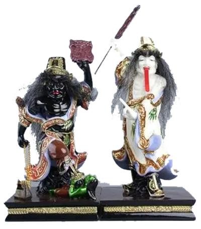 此二神手执脚镣手铐,专职缉拿鬼魂、协助赏善罚恶,在阴司被列入十大阴帅之列,也常为阎罗王、城隍、东岳大帝等冥界神明的部将。