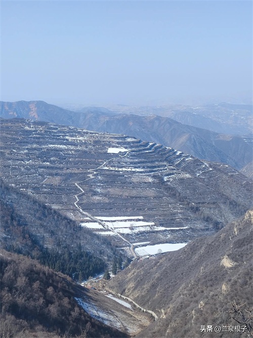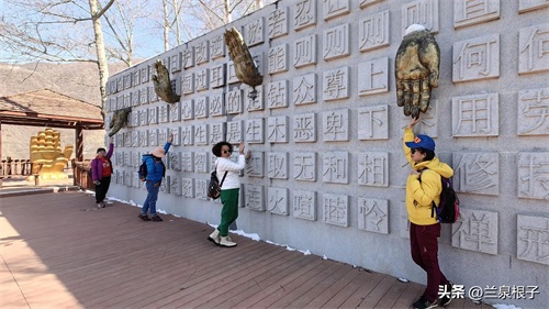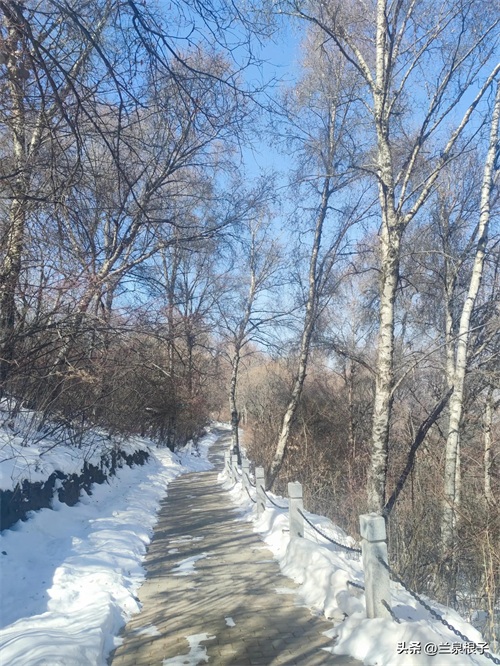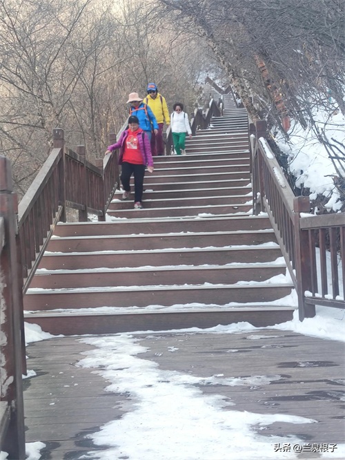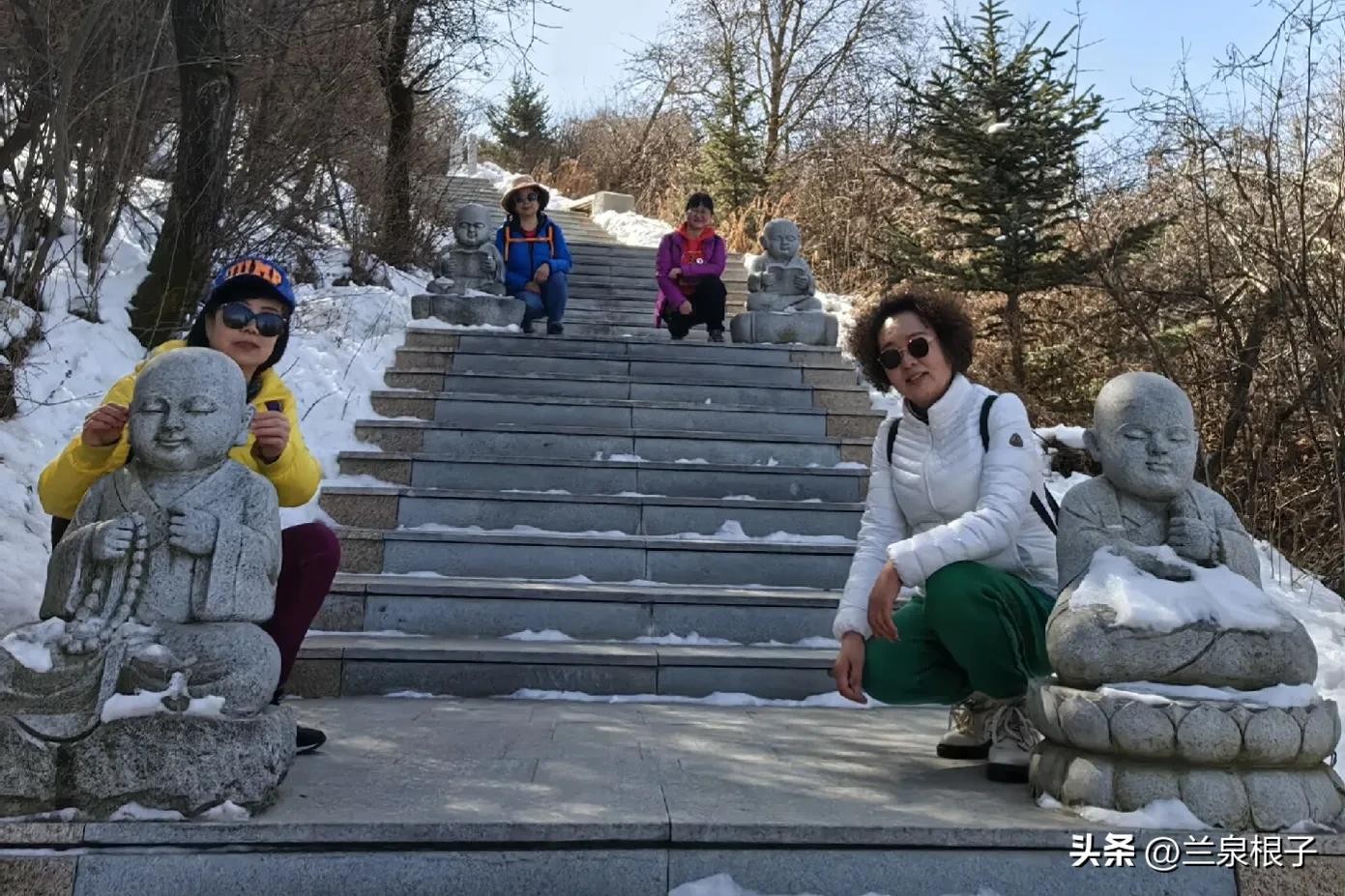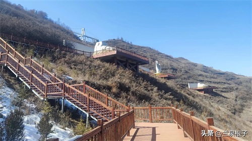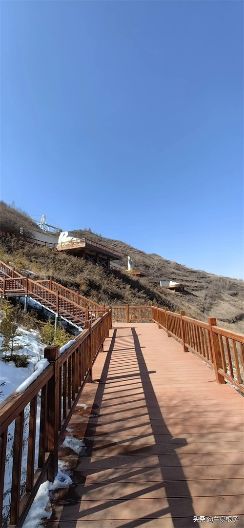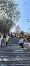 雪后栈道边小沙弥,披雪真好奇,观音广场金银指云天,叠叠水墨景色彰显国家3A旅游级兰州石佛沟国家森林公园云顶山景区风彩。