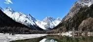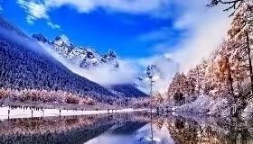 12:45 到达上海子,从下车点往湖边走,这边风景很好,但是因为2:30我们就要到达毕棚沟门票购买地集合,中途有30分钟左右的大巴车,还有大概15分钟的电瓶车,还要等车,我们就预计1点钟从这里去做电瓶车准备出发,可是说实话这里的风景真的很美,湖水的蓝,雪上的白,天空的蓝,雪地的白,真的是太美了,而且就是很多美丽的图片就是来自这里,而且那边靠近坐车点的位置,还有一些户外拓展的器材,都是木头的,也很好玩,可是因为我们时间不够,虽然有万分不舍,还是只有匆匆游玩,有点后悔当时在上卡花费太多时间,这个地方应该多花时间。