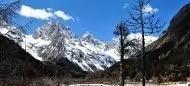 11:00 到达燕什么的地方,也就是毕棚沟的最高点,这里的海拔主要有4000米,在哪里就是比较大的一片雪地,周围就是看的比较清晰的雪山(因为我们去的当天是很大的太阳),还是很美的,对于像在我们成都的人来说,看到雪就是很美丽的体验了,哪里比较空旷,因为有雪而且阳光很好,哪里的光线就是很亮,会有很多的反射光,而且地处高原,所以云层基本很少,抬头就是蓝天白云,基于这些,在这里一定要带墨镜和防晒霜,不然到时候回成都很容易脱皮哦,如果带上自拍杆,那样子拍照就会很好看哦。那边有一个比较平的地方,往山脚方向的话,雪就会更深,很适合拍照。另外哪里有可能会有几头牦牛,你一般看到后,不要故意去激,它们一般不攻击。