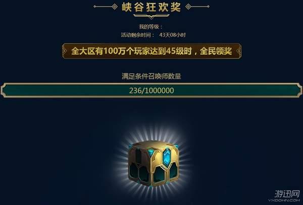以上都是率先达到50级才有的奖励,那么没有完成冲级挑战任务的小伙伴就没有奖励了吗?并不是!这次冲级活动不仅有冲级奖励,也有峡谷狂欢奖。只要全大区有100万个玩家达到45级,所有等级达到5级的玩家都可以领取一份奖励哦!