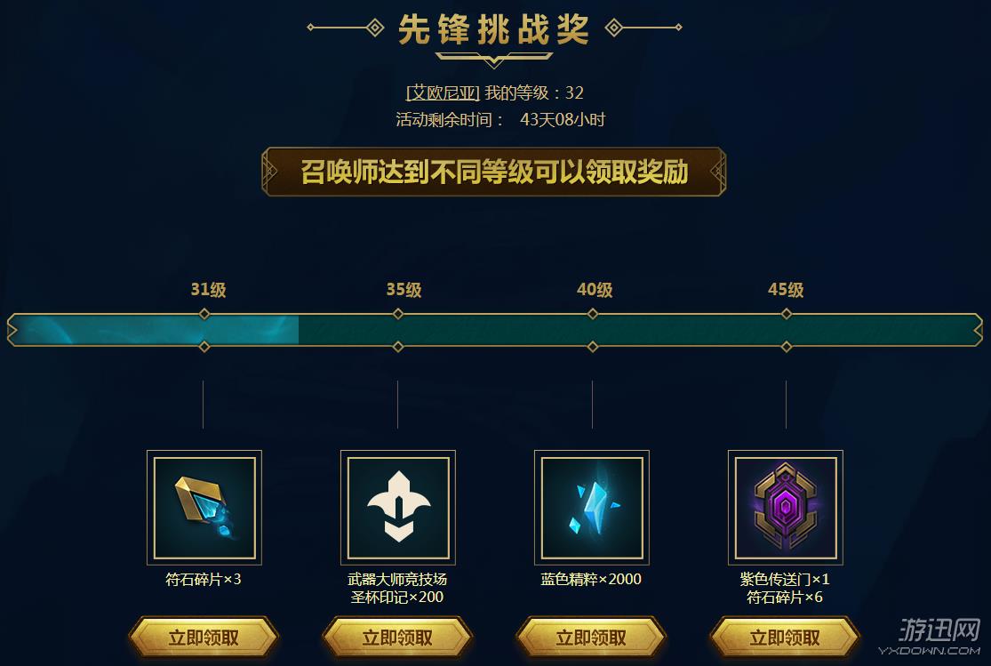 等级在50级之前会有什么奖励吗?答案是肯定的!当召唤师达到31级、35级、40级、45级的时候,就可以分别领取符石碎片、武器大师竞技场圣杯印记、蓝色精粹和紫色传送门等多种奖励哦~