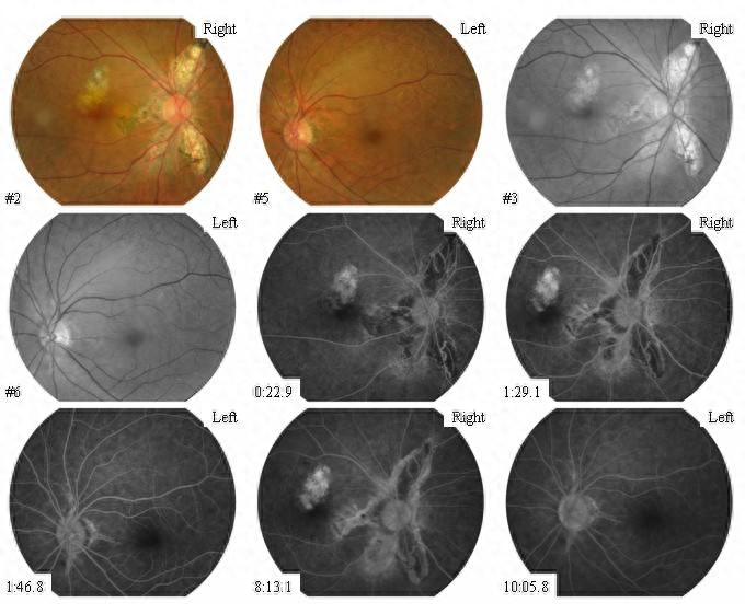 第二,荧光素眼底血管造影术。原理是使荧光素钠随血流进入眼底血管,通过一组滤色片的眼底摄影机,使视网膜和眼底血管结构更加清晰可见,而RP患者的眼底病变情况同样会在造影检查后显示的淋漓尽致。